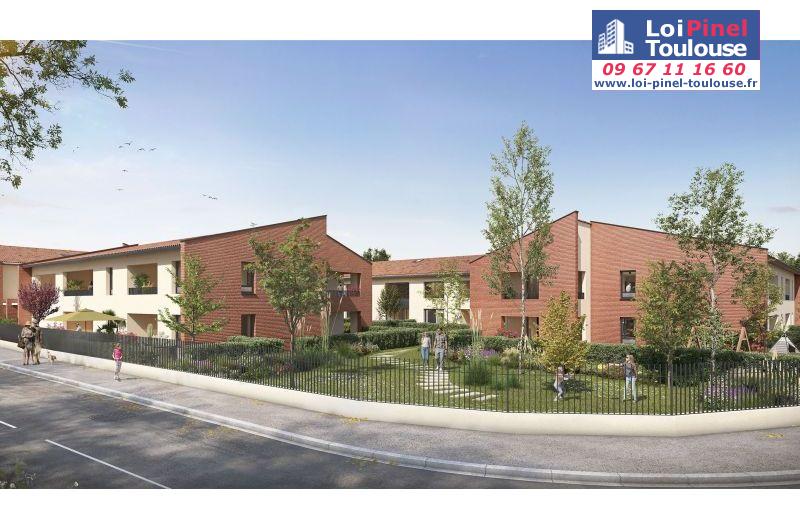 À deux pas de Toulouse, ce programme immobilier neuf se compose de quatre bâtiments de faible hauteur, accessibles par des chemins piétons et entourés de jardins verdoyants.